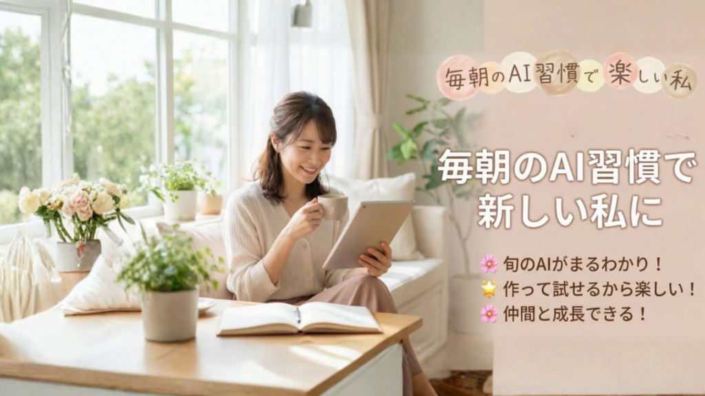 生成AIの力を日常生活や仕事に取り入れ、毎日をより豊かにするためのコースです。このコースでは、週3回、朝6時からの30分間、ChatGPTとともに一日をスタートさせます。